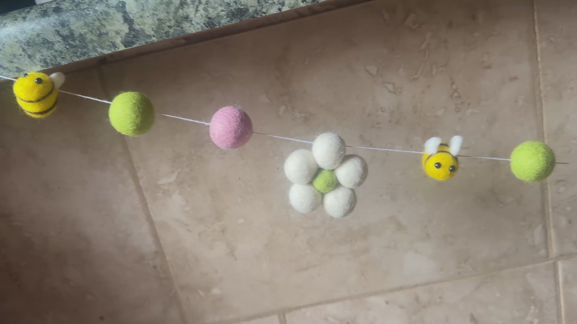 Needle felted wool daisy & bee garland